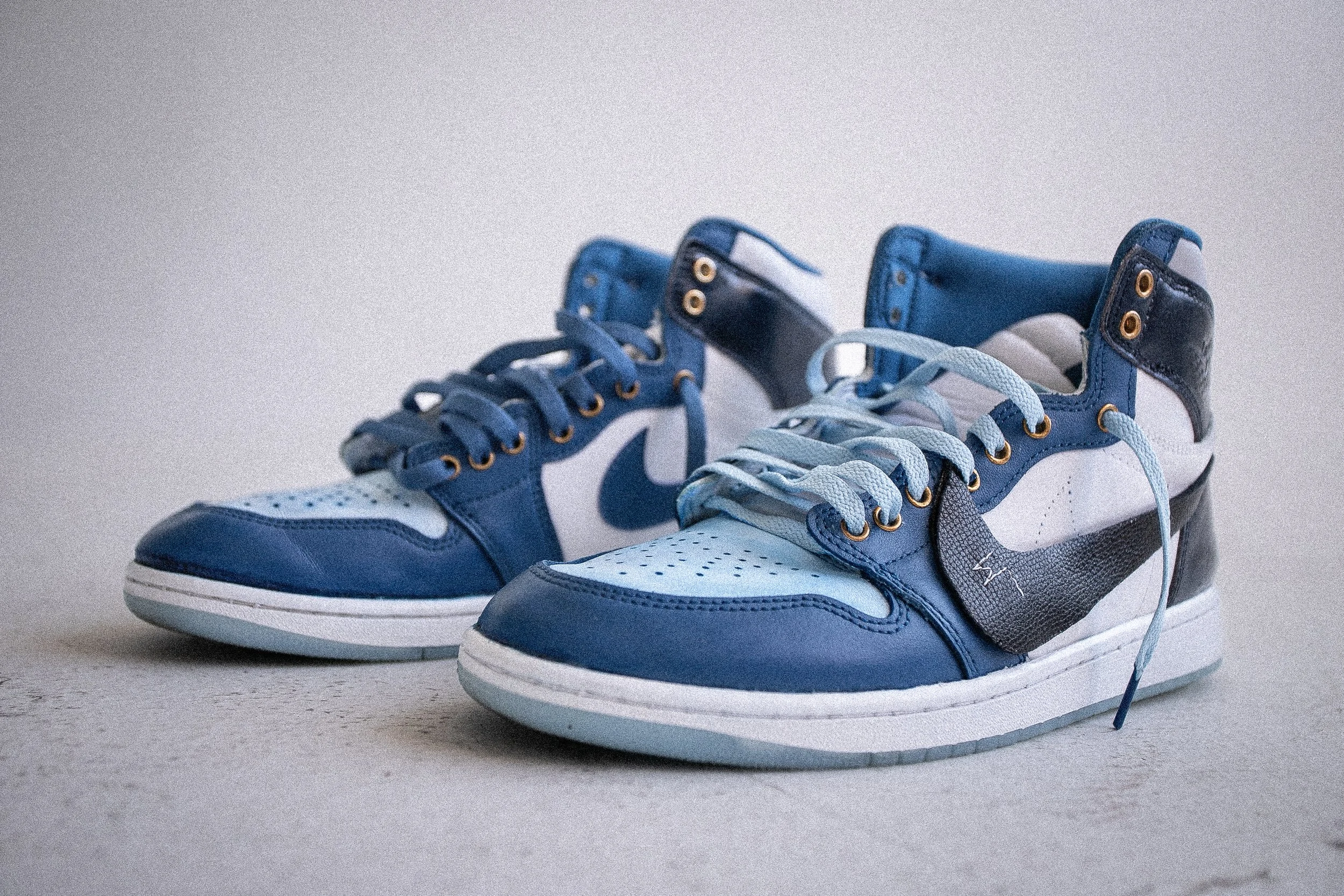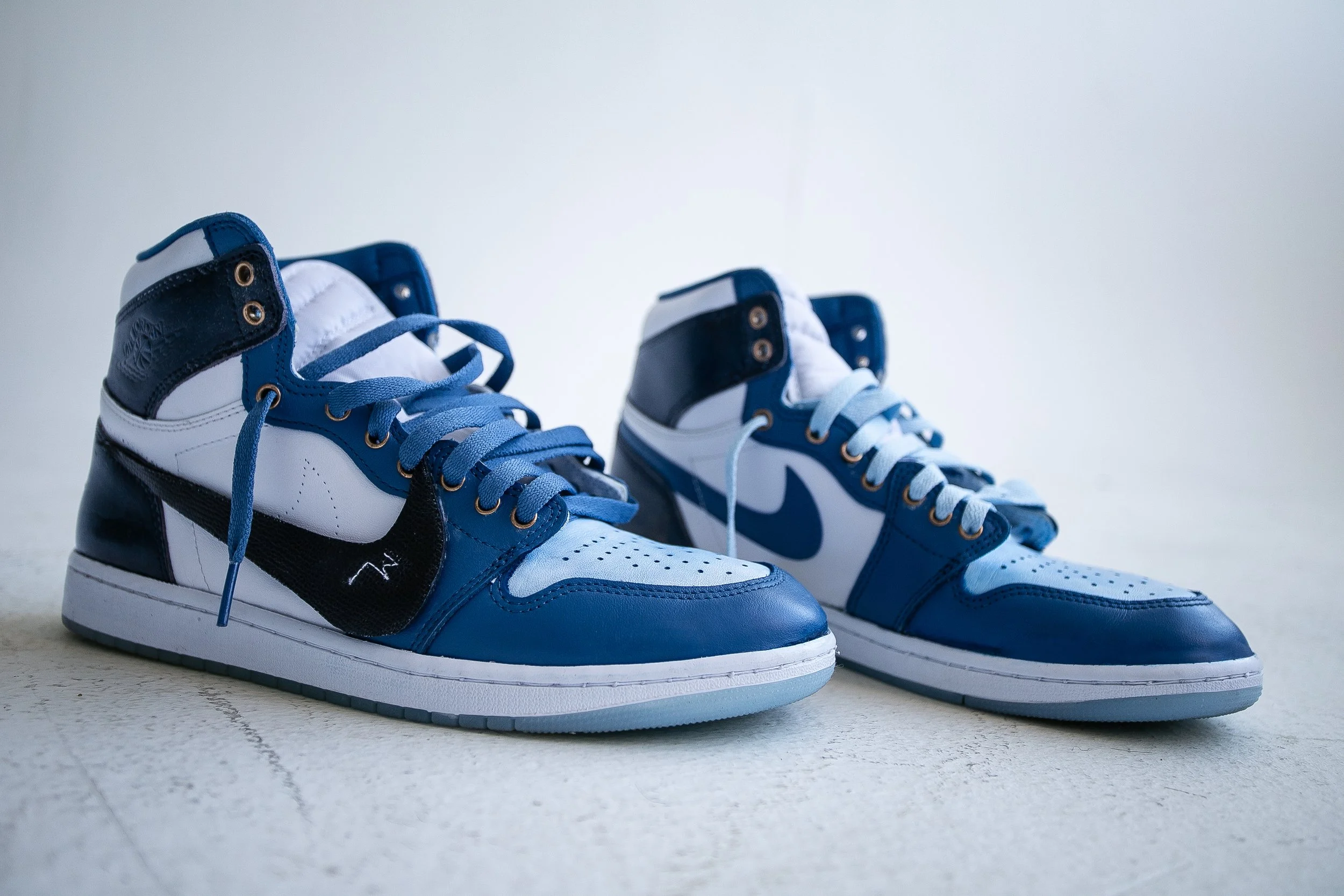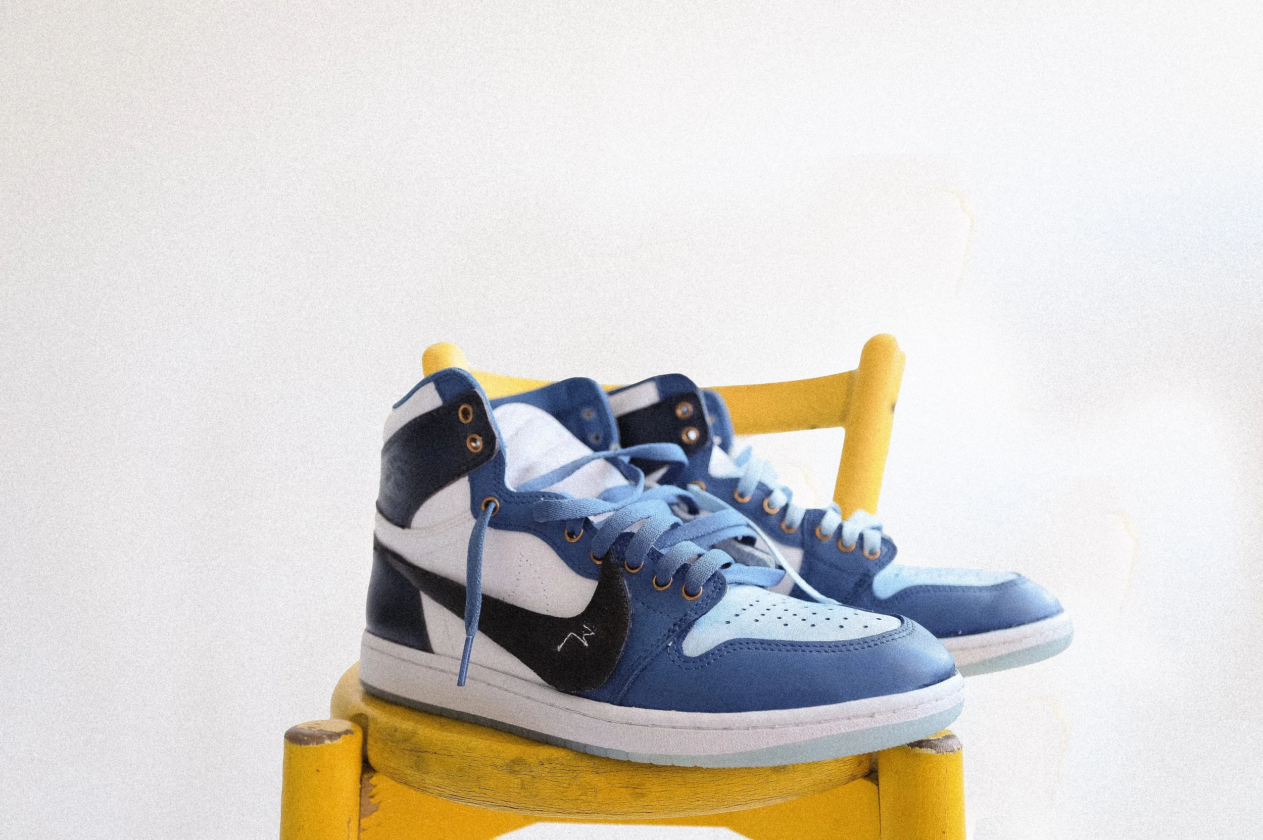 Zima Blue references the short film from Love, Death, and Robots. The sneaker is a deconstruction/reconstruction piece, transforming the True-Blue Jordan 1s into a Zima Blue sneaker. Zima Blue, the character, emerged as an artist robot in a narrative often stuck in the ambiguity of its (Zima Blue’s) identity. Frequently mistaken for a human with robotic enhancements - the revelation of the short unfolds in reverse. The storyline skillfully unveils that Zima Blue is a robot with a profound artistic inclination. This narrative twist masterfully paints a vivid portrait of the micro and macro aspects of existence. Zima Blue becomes a compelling metaphor for the complexities of identity, perception, and the intricate interplay between the artificial and the organic. The revelation not only challenges preconceived notions but also prompts contemplation on the delicate balance between authenticity and augmentation, inviting audiences to explore the nuanced intersections of humanity and technology within the broader spectrum of existence.