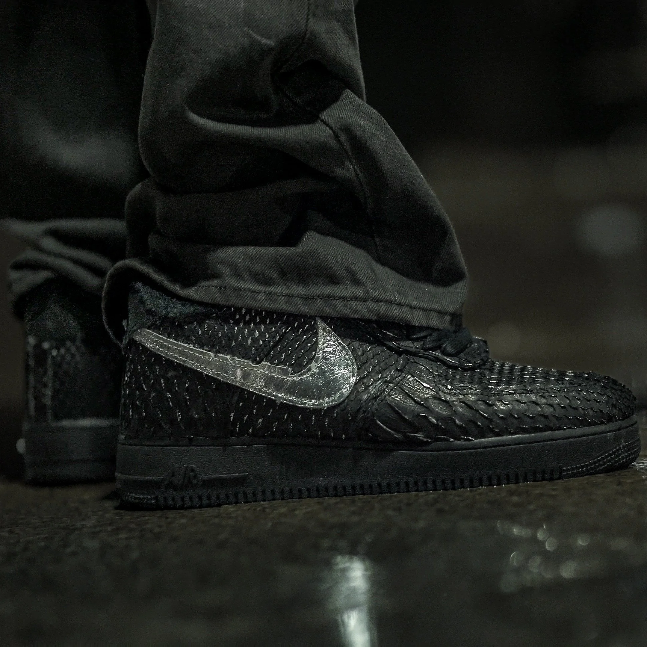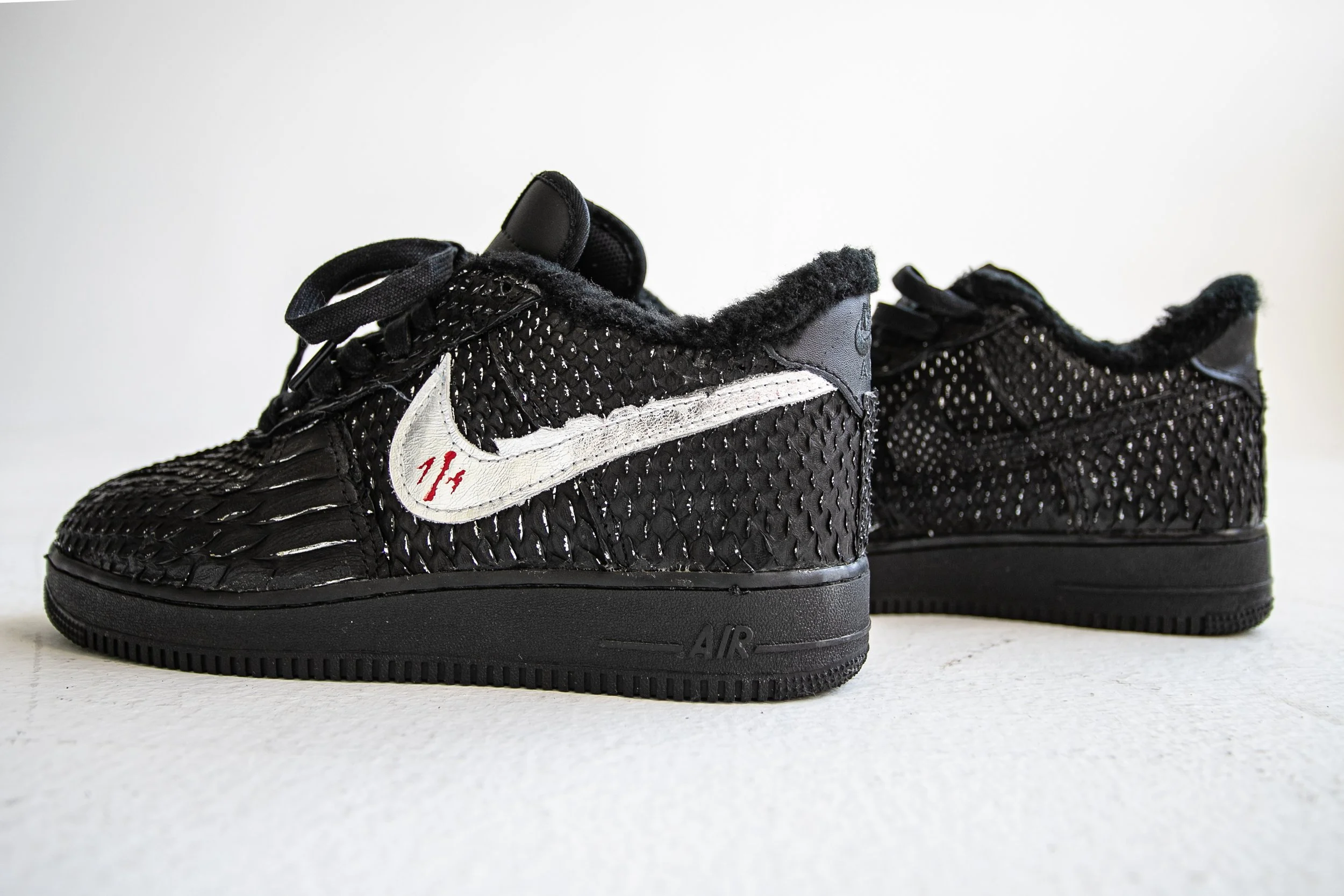The kNight critiques triggered responses to black and white, exploring how we perceive colors and shades and the roots of our triggers. The sneaker combines a monstrous material (Black Python with Silver Tipping), a reflective material (Cracked Mirror Cow), and a soft luxurious lining (Black Shearling), symbolizing misfitting. The selected materials embody luxurious, intense, and glaring qualities, intending to depict both terror and power associated with the shade Black.
